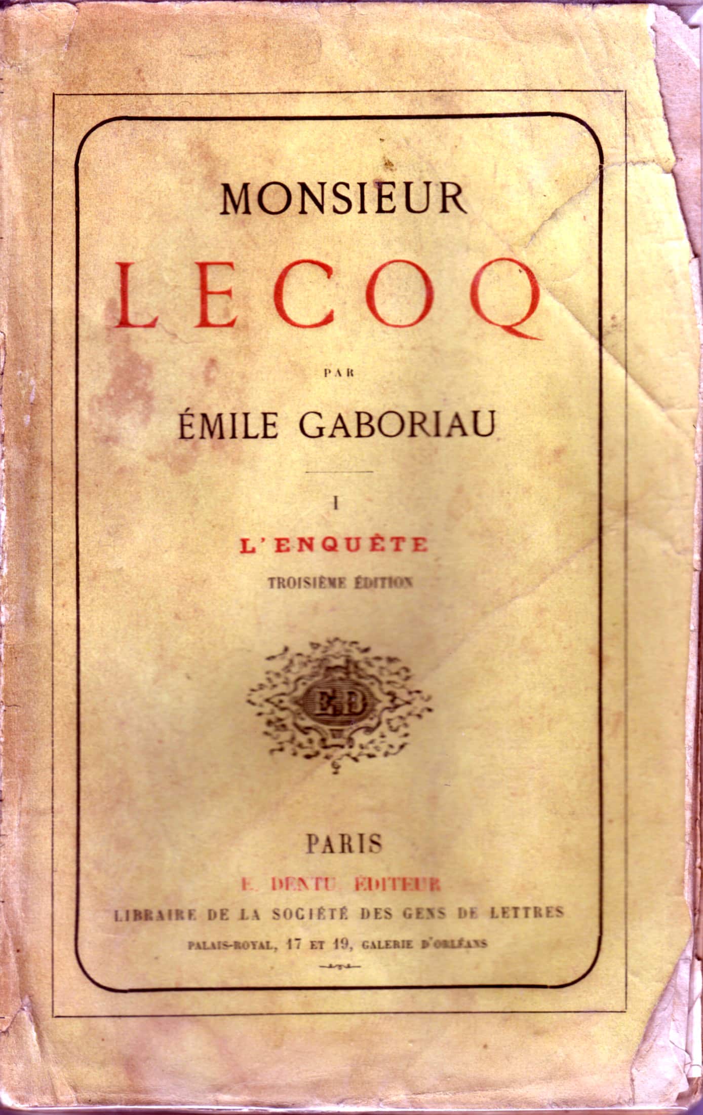 width=En 1865, paraît le premier roman que l’on peut vraiment qualifier (dans l’état actuel des connaissances) de roman policier : L'affaire Lerouge d’Émile Gaboriau, un auteur français qui a déjà écrit des poésies, des pièces de théâtre et des romans de mœurs, et qui a été rédacteur en chef de la revue Jean Diable dans laquelle est paru le roman de Paul Féval (de novembre 1862 à août 1863) !