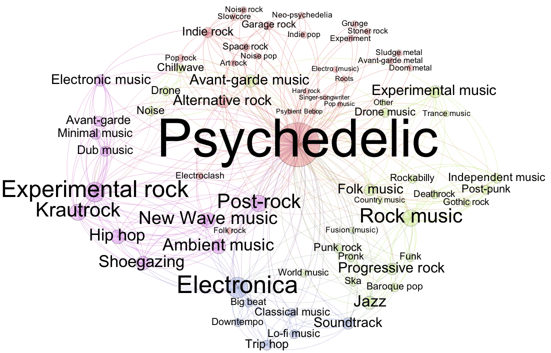 Pour l'auteur Doyle Greene (dans Rock, Counterculture and the Avant-Garde, 1966–1970: How the Beatles, Frank Zappa and the Velvet Underground Defined an Era), ces précurseurs ne sont autres que les Beatles, auxquels il ajoute bien entendu d'autres comme Frank Zappa et ses Mothers of Invention, le Pink Floyd, United States of America ou encore Soft Machine.