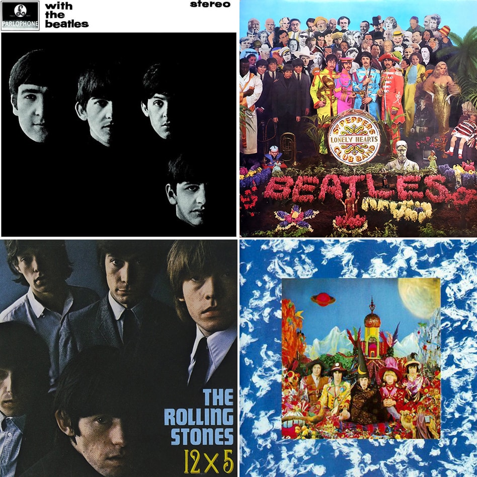 En Angleterre, les Rolling Stones, par exemple, se sont inspirés à leurs débuts des standards du blues et du rhythm'n'blues en reprenant des morceaux de Willie Dixon, de Chuck Berry ou Rufus Thomas. Les Kinks, eux aussi dans leurs premiers albums, n'hésitaient pas à reprendre des morceaux de Chuck Berry ou Little Richard.