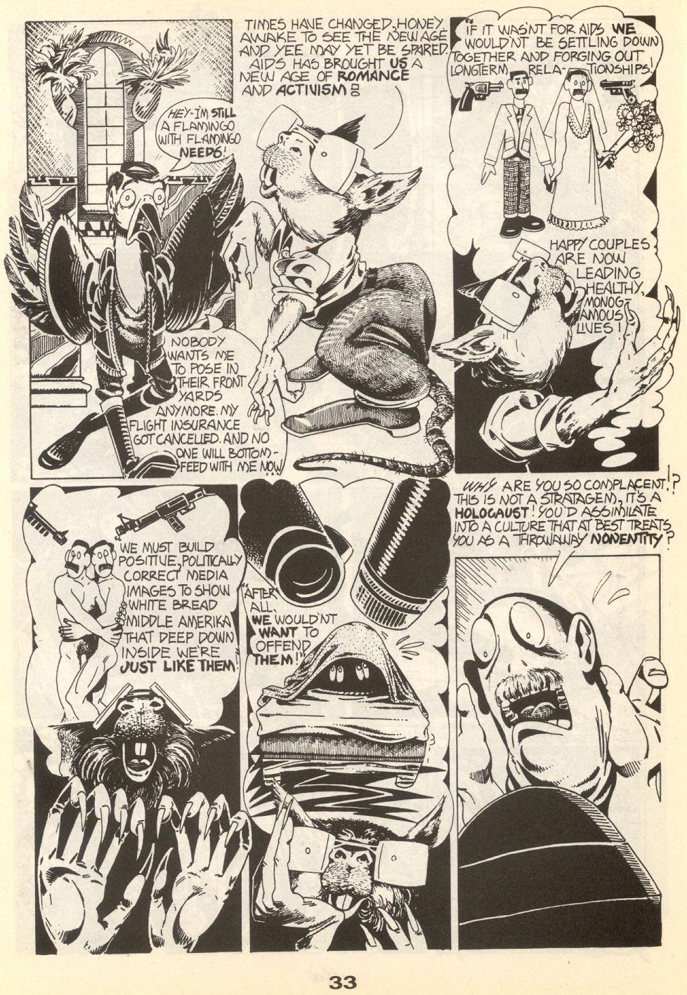 Dans les pages suivantes Vaughn Frick articule avec clairvoyance l’assimilation en cours des relations homosexuelles provoquées par la crise du SIDA. Ces pages sont un témoignage important qui rend compte d’un moment pivot de la politisation d’une identité homosexuelle qui tend inexorablement vers une assimilation. La scène est structurée par le monologue d’un rat qui explique les conséquences de la pandémie.