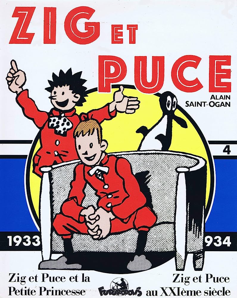 width=En 1925, Alain Saint-Ogan est appelé par l’hebdomadaire français Le Dimanche illustré pour remplacer une page de publicité manquante. Il crée ainsi au débotté les aventures de deux jeunes adolescents (un mince, un rondouillard) en manque d’argent qui vont parcourir le monde… et même le futur (Zig et Puce au XXIe siècle) ! Le duo est complété un peu plus tard par le pingouin Alfred qui apporte un peu de sel à la série et deviendra une mascotte connue au-delà de la bande dessinée. D’une grande lisibilité, il est considéré comme l'un des pères de la ligne claire, Saint-Ogan utilise systématiquement les phylactères (bulles), encore peu répandus en Europe. Il promène ses personnages de New York à l'Afrique en passant par les Indes, alimentant ses histoires de situations farfelues et de gags loufoques.