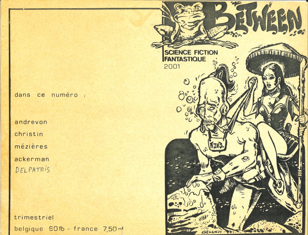 width=Le milieu du fanzine, ces petites revues amateurs fabriquées avec les moyens du bord, est particulièrement vivace et actif entre les années 1960 et les années 1990. La Belgique s’illustre même par l’abondance des propositions qui y naissent : d'abord celles de Claude Dumont, français de naissance mais belge d’adoption, qui crée Lumen dès 1963. Dans son sillage, naissent d’innombrables titres comme Atlanta de Michaël Grayn ou encore Mizar de Michel Feron. Parmi les plus notables, il y aura Xuensè du prolifique Alain Le Bussy, Ides… et autres de Bernard Goorden ou encore Phenix de Marc Bailly. Autant de titres qui permettront aux auteurs belges de science-fiction et tout particulièrement aux nouvellistes comme Dominique Warfa ou Serge Delsemme de publier et de faire leurs premiers pas dans le milieu de l’édition. Between joue également ce rôle et accueille les toutes premières fictions de l'auteur. Mais l'entreprise est bien plus ambitieuse :